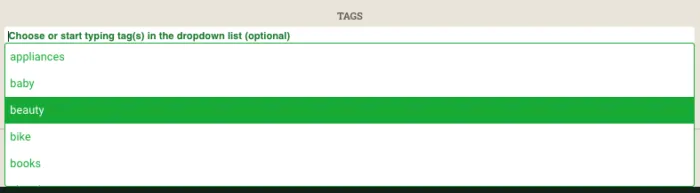 Lastly, choose some tags. This is just the general category of your item. You can add quite a few tags.